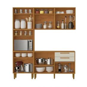 Cozinha Lorena 11 Pts Torre Quente Kaiki Móveis - Nature/off - Marrom