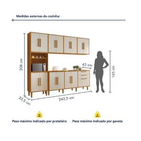 Quer deixar sua cozinha mais charmosa e organizada ao mesmo tempo? Então, nossa cozinha completa é para você! Com a fruteira e nichos para pequenas decorações e forno, ela tem espaço de sobra para tudo o que você precisa. E o melhor: as cores clean vão combinar com qualquer estilo, deixando o ambiente mais leve e sofisticado. É a solução perfeita para quem quer organizar e dar aquele toque especial na cozinha. Não perca essa chance de dar aquele upgrade na sua casa! Altura:2,08m Largura:2,42m Profundidade:0,43m
