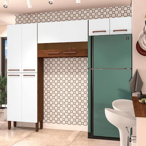 O Armário possui 8 portas sendo duas com vidro reflecta destaca-se por sua praticidade e eficiência de uso, podendo ser utilizada como complemento de cozinha.