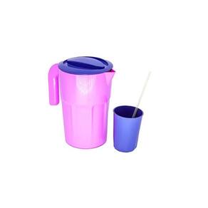 - 1 jarra tamanho 15 cm de altura x 8 cm de largura com 1 copo 6 cmde altura 4 cm de largura com 1 canudo