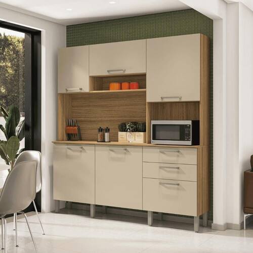 A Cozinha traz a tona todo o conceito de amplitude e organização para o ambiente, amplas repartições e nichos compõem a peça para melhor dispor de objetos e afins. Contém também espaço para forno ou micro, trazendo a praticidade de ter tudo em um só produto. Além de respeitar o meio ambiente a cozinha Ferrara vem com o acabamento com pintura fosca e textura sensível ao toque.