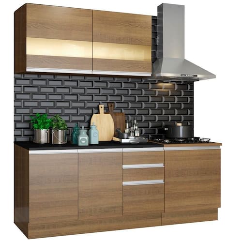 - As dimensões da cozinha Milão são ótimas, com profundidade de 52cm na torre e nos balcões inferiores e 31cm nos aéreos