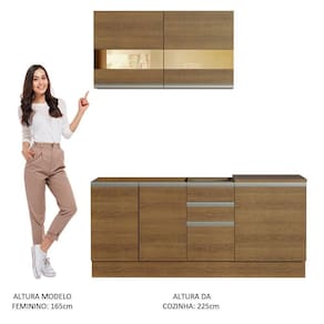 - O balcão de 60cm acompanha tampo de MDP em pintura amadeirado Rustic e todos os módulos inferiores possuem pés reguláveis em PVC e rodapé removível