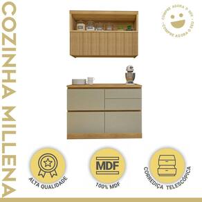 Introduza sofisticação e durabilidade à sua cozinha com a Cozinha Millena, fabricada inteiramente em MDF de alta qualidade. Este material confere resistência superior e um acabamento impecável, elevando a estética e a durabilidade do seu espaço culinário.