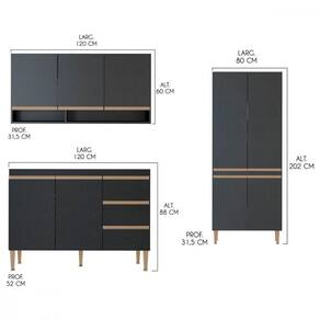 Dimensoes do Paneleiro: Altura: 202 cm Largura: 80 cm Profundidade: 31,5 cm Peso: 42 kg