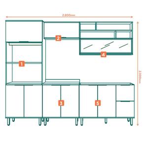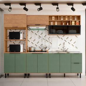 Cozinha Modulada 05 Pecas Mdf 280 Cm Tosc Freijo Jade Mxm Freijo Jade