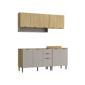 A Cozinha Modulada Ibiza é perfeita para quem busca funcionalidade, estilo e organização. Com 10 portas e 2 gavetas, oferece amplo espaço de armazenamento para mais praticidade no dia a dia. Fabricada 100% em MDF, combina resistência e design moderno. A tonalidade Louro Freijó/Cinza traz sofisticação, enquanto os puxadores em ABS bronze e os pés sextavados reguláveis garantem estabilidade. Dobradiças metálicas aumentam a durabilidade.