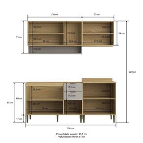 Armário aéreo (700cm):2 portas e prateleira interna. Acabamento da Prateleira: Pintura Escala de Brilho da Prateleira: Fosco Acabamento da Gaveta: Pintura Escala de Brilho da Gaveta: Fosco Material do Puxador da Gaveta: ABS Acabamento da Porta: Pintura Escala de Brilho da Porta: Fosco Material do Puxador da Porta: ABS Acabamento dos Pés: Polipropileno Acompanha Rodapé Decorativo: Não Acompanha Tampo: Não Altura dos Pés: 17 cm Altura Máxima dos Pés: 17.0000 Ambiente Principal: Cozinha Balcão Suporta Pia: Sim codigo_ean: 7900288108067 Complexidade da Montagem: Média: pode ser montado por mais de uma pessoa e/ou necessite de maior conhecimento para montagem Cor: Louro Freijó/Cinza Cor do Produto: Louro Freijó/Cinza Cor Interna: Louro Freijó Escala de Brilho: Fosco Espessura do Material da Estrutura: 12 mm Gaveta com Chave: Não Itens Inclusos: 1 Cozinha, Kit Ferragens e Manual de Montagem Linha ou Coleção: Ibiza Manual de Montagem e Instalação: https://product-hub-prd.madeiramadeira.com.br/983886/documents/f9f805f9-3212-46db-9e3e-3863ad4b98152780690289517436107565707.pdf Marca: Casamia Material da Dobradiça/Corrediça da Porta: Metálica Material da Gaveta: MDF Material da Porta: MDF Material da Prateleira: MDF Material do Fundo: HDF Material dos Pés: Polipropileno Medida de cada item (A x L x P): Armário: 71cm x 120cm x 27cm; Balcão: 85cm x 120cm x 52cm; Armário: 54cm x 70cm x 27cm; Balcão: 87,5cm x 70cm x 52cm; modular: Sim Necessita Montagem: Sim O Balcão Acompanha Pia: Não Origem do Produto: Nacional Pés Reguláveis: Sim Peso: 81,4 kg Peso Máximo por Gaveta: 15 kg Peso Máximo por Prateleira: 15 kg Possui Pés: 09 Possui Portas: Sim Possui Prateleiras: Sim Possui recorte para Cooktop: Não Possui Rodízio: Não Possui Vidro: Não Produto Montado: Sim Recomendações de Uso, Manutenção e Limpeza: Pano limpo e macio, isento de impurezas, seco ou levemente umedecido com água e sabão neutro, bem torcido até que não saia gotas de água. Não devem ser utilizados abrasivos como palha de aço e objetos cortantes. Para remoção de manchas, utilizar pano levemente umedecido com solução de álcool e água em partes iguais. Fonte: Associação Brasileira da Indústria de Painéis de Madeira - ABIPA Sapatas Niveladoras: Sim Sistema de Montagem: Parafusos e cavilhas Suporta Até (kg): 15 kg Tamanho Indicado do Tampo: 120x52 Tipo de Corrediça da Gaveta: Metálica Telescópica Tipo de Dobradiça da Porta: Simples Tipo de Puxador da Gaveta: Externo Tipo de Puxador da Porta: Externo