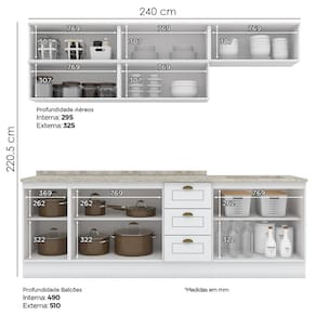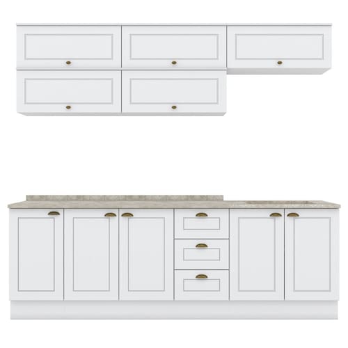 Cozinha Modulada 11 Pecas 240 cm CE381 Americana Branco Calcare Henn