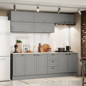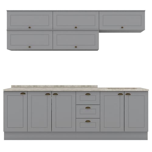 Cozinha Modulada 11 Pecas 240 cm CE381 Americana Cinza Calcare Henn