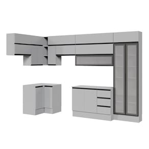 1x Balcão de Canto Reto 90cm com Tampo Nara Cabecasa Madeiramadeira Cinza Claro