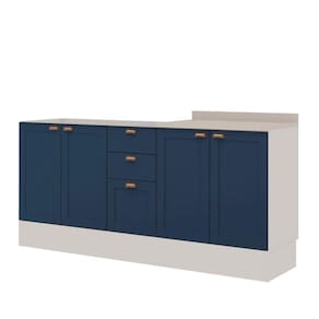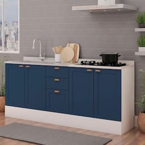 Transforme o coração da sua casa com a Cozinha Modulada 2 Balcões - 100% MDF - Branca e Azul da Genialflex. Combinando funcionalidade, qualidade e estilo, este conjunto é a escolha certa para um ambiente prático e sofisticado.