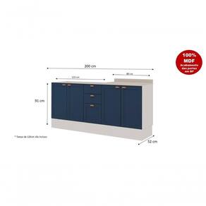 Cor: Azul | Estado de Origem: RS | Peso Produto Com Embalagem (Kg): 66 | Garantia em Meses: 3 | Nome do Simples no Fornecedor: Genialflex | Comprimento Produto Com Embalagem (cm): 124 | Altura do Produto com Embalagem (cm): 10 | Largura Produto Com Embalagem (cm): 51,5 | Material para Filtro: MDF | Largura do Produto (cm): 200 | Peso do Produto (Kg): 65 | Comprimento do Produto (cm): 52 | Descrição do Tamanho: Grande | Altura do Produto (cm): 91 | Principais Características do Produto (bullet_point#0): 100% MDF | Principais Características do Produto (bullet_point#1): Pés ajustáveis | Principais Características do Produto (bullet_point#2): Dobradiça Metálica | Principais Características do Produto (bullet_point#3): Corrediça Telescópica | Material do corpo: MDF | Tipos de móveis de Cozinha: Balcão