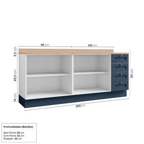 1x Balcão 2 Portas 80cm Arizona Branco/Azul Largura: 80 cm Altura: 92,5 cm Peso: 27,7 kg Profundidade: 52 cm Necessita Montagem: Sim