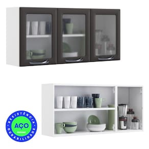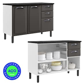 O Balcão possui 3 Portas e 2 Gavetas, o Armário Aéreo possui 3 Portas e duas prateleiras com espaço ideal para guardar mantimentos, panelas, potes, utensílios outros objetos que são essenciais no preparo de suas receitas.