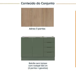 1x Balcão Pia 120cm sem Tampo com Rodapé Puxador 150mm Ipanema Verde Folha/Branco Largura: 120 cm Altura: 83,5 cm Peso: 42,01 kg Profundidade: 51,5 cm Necessita Montagem: Sim