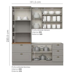 No conceito inspirado nas cozinhas estilo americano. Um conjunto modular de cozinha sendo 3 peças: 1 balcão de 120 cm (SEM TAMPO) 1 Armário Aéreo de 120 cm e 1 Torre quente de 71,5 cm. Todo o conjunto com estrutura feita 100% MDF de 15mm (fundo com 3mm, tampo da Torre Quente em MDF de 25mm) , portas com dobradiças metálicas 35 mm com amortecimento e fechamento suave, 3 gavetas com corrediças telescópicas suportando 3kg cada, total de 6 prateleiras espaçosas suportando até 8 kg. Cozinha com acabamento em pintura UV texturizada (fosco), portas e gavetas com detalhes de usinagem em baixo relevo, que proporciona beleza e facilidade ao limpar, além do destaque em seus puxadores em metal zamac. Este móvel chegará na sua casa separado em 05 volumes.