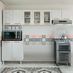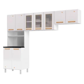 Características: Marca: Telasul Modelo: Diamante Tipo: Cozinha modulada Quantidade de peças: 3 peças Quantidade de portas: 9 portas Material da estrutura: Aço Material das portas: Aço | Vidro temperado Material dos puxadores: Plástico Nichos: Sim Pés: Sim Acabamento: Pintura eletrostática