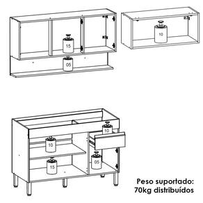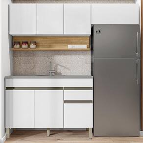 Cozinha Modulada 3 Peças, estilo moderno em módulos que se adaptam ao seu espaço! Produzido em MDP (15mm) com acabamento em pintura UV texturizada. Composta por 07 portas totais (portas superiores com sistema passante), gaveta com corrediças telescópicas, nicho decorativo, uma prateleira interna e puxadores em perfil alumínio (no balcão). Os pés reguláveis são em plástico resistente. PIA/TAMPO NÃO INCLUSOS. Este produto será entregue em 04 volumes.