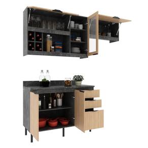 Características: Estrutura em MDP 5 Portas 3 Gavetas Acabamento em BP Light e pintura UV 1 Divisor de talheres incluso Dobradiças reta caneco de 35mm Duplo pistão a gás Corrediças telescópicas Puxadores minimalista em alumínio Pés reguláveis em PVC Peso suportado por gavetas 3 á 5 kg Peso suportado por prateleiras 3 á 10kg Tampo suporta 20kg
