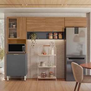 A Cozinha Modulada 3 Pe?as Alba Dem?bile ideal para organizar e decorar com estilo. Conta com estrutura em MDP, acabamento em pintura UV, dobradi?as met?licas, puxadores em pl?stico ABS, vidro incolor nos arm?rios e p?s com regulagem de altura. Inclui pist?o a g?s para maior praticidade e durabilidade. Design funcional e moderno, perfeito para otimizar o espa?o.
