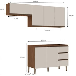 Material de Qualidade: Estrutura robusta e durável, garantindo longevidade e resistência. Acabamento da Prateleira: Pintura UV Escala de Brilho da Prateleira: Brilhante Acabamento da Gaveta: Pintura UV Escala de Brilho da Gaveta: Fosco Acabamento da Porta: Pintura UV Escala de Brilho da Porta: Fosco Acabamento dos Pés: Pintura Acompanha Tampo: Não Altura dos Pés: 17 cm Ambiente Principal: Cozinha Complexidade da Montagem: Baixa: pode ser montado por uma pessoa sozinha Cor: Ébano/Off White Cor do Produto: Ébano/Off White Cor Flex: Não Cor Interna: Ébano Escala de Brilho: Fosco Espessura do Material da Estrutura: 15 mm Gaveta com Chave: Não Informações Complementares: Cozinha Modulada 3 Peças Sem Tampo 2 Aéreos 1 Balcão Itens Inclusos: Balcão de 120cm + Aéreo de 120cm + Aéreo de 70cm + Manual de montagem Linha ou Coleção: Conecta Manual de Montagem e Instalação: https://product-hub-prd.madeiramadeira.com.br/911595/documents/e98a7605-2b25-44aa-8038-c13dce50175a199486473417170036163915.pdf Material da Dobradiça/Corrediça da Porta: Metálica Material da Gaveta: MDP Material da Porta: MDP Material da Prateleira: MDP Material dos Pés: ABS modular: Sim Montagem Flex: Não Necessita Montagem: Sim O Balcão Acompanha Pia: Não Origem do Produto: Nacional Pés Reguláveis: Sim Peso: 69,65 kg Peso Máximo por Gaveta: 5 kg Peso Máximo por Prateleira: 5 kg Possui Espelho: Não Possui Possui Pés: 05 Possui Portas: Sim Possui Prateleiras: Sim Possui Rodízio: Não Possui Vidro: Não Recomendações de Uso, Manutenção e Limpeza: Para retirada do número de identificação da peça, usar pano levemente umidecido com alcool, para limpeza em geral pano seco Sapatas Niveladoras: Não Sistema de Montagem: Parafusos e Cavilhas Suporta Até (kg): 35 kg Tamanho Indicado da Pia: 120 Tamanho Indicado do Tampo: 120 Tipo de Corrediça da Gaveta: Telescópica Tipo de Dobradiça/Corrediça da Porta: 35 mm Tipo de Puxador da Gaveta: Embutido Tipo de Puxador da Porta: Embutido