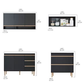 O Balc?o de Cozinha Sabrina foi desenvolvido para atender todas as suas necessidades do dia a dia com um design moderno, cheio de atitude, personalidade, funcionalidade, beleza e versatilidade. A cozinha preta ? uma tend?ncia e foi arquitetada para facilitar a sua rotina di?ria mantendo seu ambiente organizado e aconchegante. Possui tr?s gavetas e duas portas com prateleira interna. A eleg?ncia fica por conta dos puxadores em perfil e os p?s na cor bronze dando um toque ?nico de sofistica??o. A Cozinha Sabrina ? produzida com materiais de excelente qualidade, garantindo a durabilidade e vida ?til. O melhor em m?veis no design atual aliando conforto, qualidade e ?timos pre?os, s? na Menu M?veis!