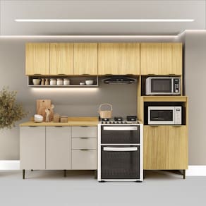 Solução completa para sua cozinha, unindo praticidade e sofisticação! Acabamento da Prateleira: Pintura Escala de Brilho da Prateleira: Fosco Acabamento da Gaveta: Pintura Escala de Brilho da Gaveta: Fosco Material do Puxador da Gaveta: ABS Acabamento da Porta: Pintura Escala de Brilho da Porta: Fosco Material do Puxador da Porta: ABS Acabamento dos Pés: Polipropileno Acompanha Rodapé Decorativo: Não Acompanha Tampo: Sim Altura dos Pés: 17 cm Altura Máxima dos Pés: 17.0000 Ambiente Principal: Cozinha Balcão Suporta Pia: Não codigo_ean: 7900288107756 Complexidade da Montagem: Média: pode ser montado por mais de uma pessoa e/ou necessite de maior conhecimento para montagem Cor: Louro Freijó/Cinza Cor do Produto: Louro Freijó/Cinza Cor Interna: Louro Freijó Escala de Brilho: Fosco Espessura do Material da Estrutura: 12 mm Espessura do Tampo: 25 mm Gaveta com Chave: Não Itens Inclusos: 1 Torre-quente, 1 Balcão, 2 Armário, 1 Tampo, Kit Acessório e Manual de Montagem Linha ou Coleção: Ibiza Manual de Montagem e Instalação: https://product-hub-prd.madeiramadeira.com.br/983857/documents/b45dfacb-313f-4888-ae18-617742d8363c2778686289517435906928891.pdf Marca: Casamia Material da Dobradiça/Corrediça da Porta: Metálica Material da Gaveta: MDF Material da Porta: MDF Material da Prateleira: MDF Material do Fundo: HDF Material do Tampo: MDF Material dos Pés: Polipropileno Medida de cada item (A x L x P): Torre-Quente: 220cm x 70cm x 52cm; Armário: 71cm x 120cm x 27cm; Balcão: 85cm x 120cm x 52cm; Armário: 54cm x 70cm x 27cm; Tampo: 2,5cm x 120cm x 52cm modular: Sim Necessita Montagem: Sim O Balcão Acompanha Pia: Não Origem do Produto: Nacional Pés Reguláveis: Sim Peso: 111,3 kg Peso Máximo por Gaveta: 15 kg Peso Máximo por Prateleira: 15 kg Possui Pés: 13 Possui Portas: Sim Possui Prateleiras: Sim Possui recorte para Cooktop: Não Possui Rodízio: Não Possui Vidro: Não Produto Montado: Sim Recomendações de Uso, Manutenção e Limpeza: Pano limpo e macio, isento de impurezas, seco ou levemente umedecido com água e sabão neutro, bem torcido até que não saia gotas de água. Não devem ser utilizados abrasivos como palha de aço e objetos cortantes. Para remoção de manchas, utilizar pano levemente umedecido com solução de álcool e água em partes iguais. Fonte: Associação Brasileira da Indústria de Painéis de Madeira - ABIPA Sapatas Niveladoras: Sim Sistema de Montagem: Parafusos e cavilhas Suporta Até (kg): 15 kg Tipo de Corrediça da Gaveta: Metálica Telescópica Tipo de Dobradiça da Porta: Simples Tipo de Puxador da Gaveta: Externo Tipo de Puxador da Porta: Externo