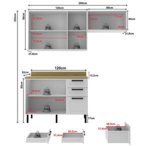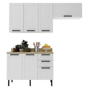 Conjunto de cozinha 04 peças, composto por dois armários aéreo (120cm e 80cm) e um balcão para pia com tampo. Balcão e Armários Aéreos composto por estrutura 100% MDF 15mm com acabamento em pintura BP (brilho) e Tampo de 30mm com acabamento em pintura BP (semibrilho). Conta com 5 portas equipadas com dobradiças de 35 mm com amortecimento slow motion, Aéreo de 80cm com porta basculante e duplo pistão a gás, com detalhes em usinagem de baixo relevo no estilo provençal. Balcão com 3 gavetas com corrediças telescópicas (sendo uma com divisor de talheres), puxadores em alumínio e pés reguláveis em PVC com altura de 17 cm e detalhe cromado. Excelente para quem busca um móveis funcionais e ótimo desempenho. Este móvel chegará na sua casa separado em 06 volumes.