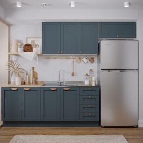 A Cozinha Modulada Arizona é indicada para quem tem pouco espaço e está buscando um móvel compacto, bonito e funcional. Possui portas com molduras, dobradiças com amortecimento e gavetas com corrediças telescópicas.