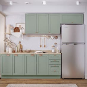 A Cozinha Modulada Arizona é indicada para quem tem pouco espaço e está buscando um móvel compacto, bonito e funcional. Possui portas com molduras, dobradiças com amortecimento e gavetas com corrediças telescópicas. Para segurança, produto utiliza kit anti tombamento, sendo necessário parafusar à parede. Altura do Conjunto: 92.5 cm Ambiente: null Ambiente Principal: Cozinha Cor: Branco/Menta Informação Complementar: 1x Balcão para Pia 120cm Arizona Branco/MentaLargura: 120 cmAltura: 92,5 cmPeso: 51,3 kgProfundidade: 52 cmNecessita Montagem: Sim1x Balcão 2 Portas 80cm Arizona Branco/MentaLargura: 80 cmAltura: 92,5 cmPeso: 27,7 kgProfundidade: 52 cmNecessita Montagem: Sim1x Armário Aéreo 3 Portas 120cm Arizona Branco/MentaLargura: 120 cmAltura: 68,6 cmPeso: 27,3 kgProfundidade: 37 cmNecessita Montagem: Sim1x Armário Aéreo Porta Basculante 80cm Arizona Branco/MentaLargura: 80 cmAltura: 34 cmPeso: 10,8 kgProfundidade: 37 cmNecessita Montagem: Sim Possui Rodízio: Não Tamanho: