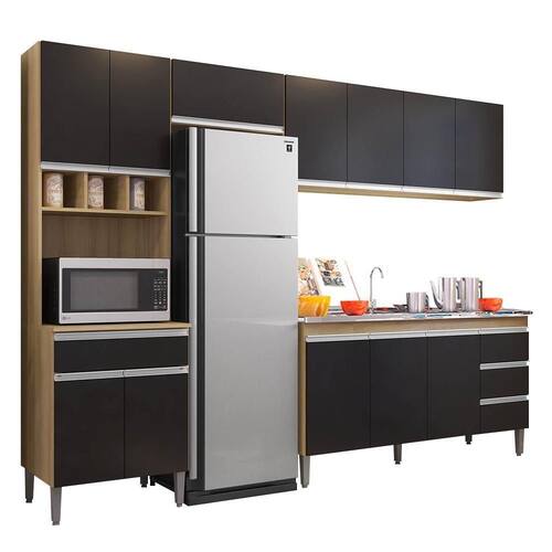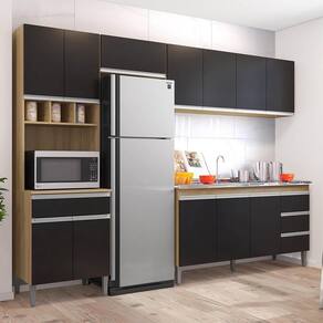 Chegou a hora de dar uma cara nova para esse ambiente tão importante e você ainda não sabe o que escolher? Conheça a Cozinha Modulada 4 Peças Balcão com Pia 160cm Andréia Amêndoa/Preto, da AJL Móveis!