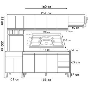 Conteúdo da Embalagem: 1 Balcão 160cm, 1 Armário Aéreo 160cm, 1 Armário Aéreo 60cm, 1 Paneleiro, 1 Pia.
