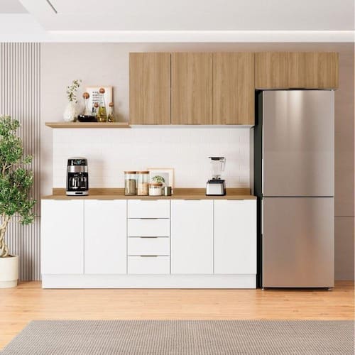 A Cozinha Ipanema é um móvel com design moderno, feito com material de qualidade para garantir alta durabilidade e resistência contra umidade. Conferem versatilidade e praticidade no dia a dia, permitindo armazenar diferentes objetos. Uma opção de móvel prático e funcional para quem busca organização e estilo em sua casa. Altura do Conjunto: 93 cm Ambiente Principal: Cozinha codigo_ean: 7909903486849 Cor: Branco/Amadeirado Cor do Produto: Branco/Amadeirado Informação Complementar: 1x Armário Aéreo 3 Portas 120cm Puxador 150mm Ipanema Acácia/Branco Largura: 120 cm Altura: 69,5 cm Peso: 31,44 kg Profundidade: 36,7 cm Necessita Montagem: Sim