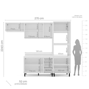 Dimensoes: Altura: 224,5 cm Largura: 270 cm Profundidade: 52 cm Peso: 110,49 kg