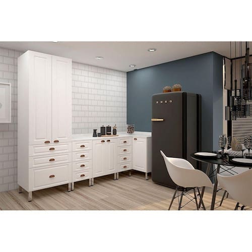 Desenvolvido com materiais de altissima qualidade, a Cozinha Compacta Modulada 4 Pecas com Tampo Branco Cristal Luciane Moveis oferece excelente distribuicao de espaco interno.