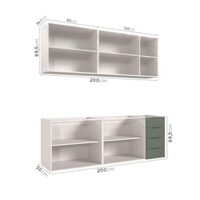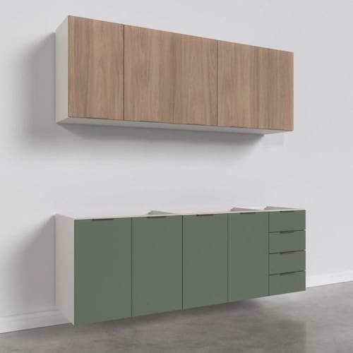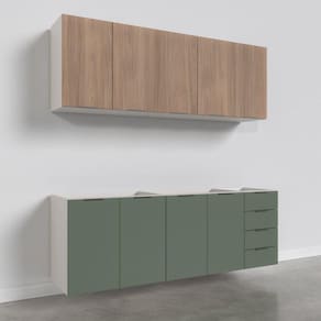 Cozinha Modulada 4 Peças Sem Tampo 2 Aéreos e 2 Balcões Ipanema CabeCasa MadeiraMadeira Acácia/Verde Folha/Branco