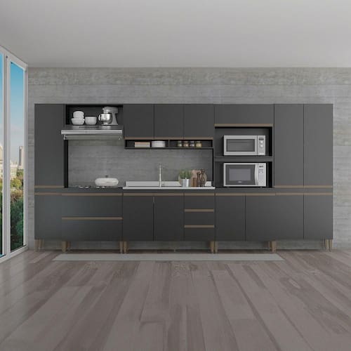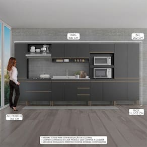 Cozinha Modulada 400cm Sabrina 7pçs Reins Preto Menu Móveis Preto