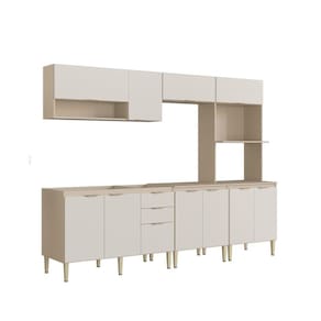 Cozinha modulada Carol 5 peças na cor mocca/areia. Cozinha com aéreo 120 duas portas e nicho, aéreo 70 basculante, balcão 120 com três portas e duas gavetas, balcão 70 com tampo e kit forno e microondas. Acabamento da Prateleira: Pintura Escala de Brilho da Prateleira: Semi-Brilho Acabamento da Gaveta: Pintura Escala de Brilho da Gaveta: Semi-Brilho Material do Puxador da Gaveta: Plástico Acabamento da Porta: Pintura Escala de Brilho da Porta: Semi-Brilho Material do Puxador da Porta: Plástico Acabamento dos Pés: Polipropileno Acompanha Tampo: Não Altura dos Pés: 17 Altura Máxima dos Pés: 17.0000 Ambiente Principal: Cozinha codigo_ean: 7909903343432 Complexidade da Montagem: Média: pode ser montado por mais de uma pessoa e/ou necessite de maior conhecimento para montagem Cor: Mocca/Areia Cor do Produto: Mocca/Areia Cor Flex: Mocca/Areia Cor Interna: Mocca Escala de Brilho: Semi-Brilho Espessura do Material da Estrutura: 15 mm Gaveta com Chave: Não Itens Inclusos: 1 Cozinha Compacta, Manual de Montagem e Kit Ferragens Manual de Montagem e Instalação: https://product-hub-prd.madeiramadeira.com.br/855669/documents/fc1b1050-280f-42bb-8049-9b48dfe172a81383405cozinhacarol5pcs.pdf Material da Dobradiça/Corrediça da Porta: Alumínio Material da Gaveta: MDP Material da Porta: MDP Material da Prateleira: MDP Material do Fundo: MDP Material dos Pés: Polipropileno Medida de cada item (A x L x P): Balcã0 120: 120x51x84,5cm, Aéreo 120: 120x29x50 cm, Balcão 70: 70x83x86 cm, Aéreo 70: 70x29x30 cm, kit forno: 70x53x202 cm modular: Sim Montagem Flex: Sim Necessita Montagem: Sim O Balcão Acompanha Pia: Não Origem do Produto: Nacional Pés Reguláveis: Sim Peso: 120 kg Peso Máximo por Gaveta: 5 kg Peso Máximo por Prateleira: 7 kg Possui Pés: 13 Possui Portas: Sim Possui Prateleiras: Sim Possui recorte para Cooktop: Não Possui Rodízio: Não Possui Vidro: Não Produto Montado: Sim Recomendações de Uso, Manutenção e Limpeza: Usar pano seco e macio para limpeza das superfícies. Sapatas Niveladoras: Sim Sistema de Montagem: Parafusos, cavilhas Suporta Até (kg): 40 kg Tamanho Indicado da Pia: 120x53 cm Tamanho Indicado do Tampo: 120x53cm Tipo de Corrediça da Gaveta: Simples Tipo de Dobradiça da Porta: Simples Tipo de Puxador da Gaveta: Externo Tipo de Puxador da Porta: Externo Ean: 7909903343432