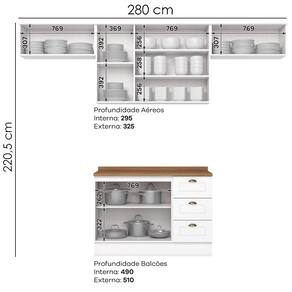 No estilo provençal com conceito inspirado nas cozinhas estilo americano. Um conjunto modular de cozinha sendo 5 peças: 3 Armários Aéreos (2 aéreo basculante 80 cm e 1 aéreo 3 portas 120 cm) e 1 balcão de 120 cm e 1 tampo de 120 cm. Todo o conjunto com estrutura feita 100% MDF de 15mm (fundo com 3mm, tampo em MDF de 25mm) , portas com dobradiças metálicas 35 mm com amortecimento e fechamento suave, e 3 gavetas com corrediças telescópicas, suportando 3kg cada, sua interna conta com 4 prateleiras espaçosas, cada uma suportando até 8 kg. Cozinha com acabamento em pintura UV texturizada, com portas e gavetas com detalhes de usinagem em baixo relevo que proporciona beleza e facilidade ao limpar, além do destaque em seus puxadores em metal zamac, tampo de 120 x 53,5 cm. Este móvel chegará na sua casa separado em 05 volumes.