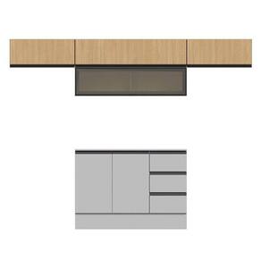 Cozinha Modulada 5 Peças 4 Aéreos 1 Balcão Nara Cabecasa Madeiramadeira Avena/Cinza Claro - Marrom