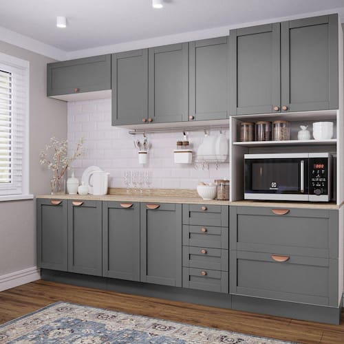 A Cozinha Modulada Arizona é indicada para quem tem pouco espaço e está buscando um móvel compacto, bonito e funcional. Possui portas com molduras, dobradiças com amortecimento e gavetas com corrediças telescópicas.