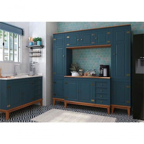 A Cozinha Modulada 5 Peças Azul Petróleo da La Decora é completamente cheio de charme e elegância. Com estilo rústico que agrega luxo e conforto à decoração, é ideal para compor ambientes de cozinha e copa.