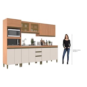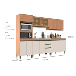 Cozinha Modulada Cecília cinco peças, produto com chapa de 15 mm perfect, torre quente com espaça para micro-ondas e forno com as suas medidas A:41,5 XL 67 X P: 52 para o micro e forno A: 38,8 X L: 67 X P: 52 cm, possui corrediças e dobradiças metálicas. Acabamento da Prateleira: Finish Foil Escala de Brilho da Prateleira: Fosco Acabamento da Gaveta: Finish Foil Escala de Brilho da Gaveta: Fosco Acabamento da Porta: Finish Foil Escala de Brilho da Porta: Fosco Acabamento dos Pés: Polipropileno Acompanha Tampo: Sim Altura dos Pés: 17 cm Ambiente Principal: Cozinha codigo_ean: 7909903384206 Complexidade da Montagem: Baixa: pode ser montado por uma pessoa sozinha Cor: Freijó/Off White Cor do Produto: Freijó/Off white Cor Flex: Não Cor Interna: Freijó Escala de Brilho: Fosco Espessura do Material da Estrutura: 15 mm Espessura do Tampo: 15 mm Gaveta com Chave: Não Itens Inclusos: 1 Cozinha, Kit Ferragens e manual de montagem Linha ou Coleção: 2023 Manual de Especificação Técnica: https://product-hub-prd.madeiramadeira.com.br/864853/documents/453d32a4-e9bf-4cdc-bbd7-77b2a76a89b7fichatEcnicacozinhacecIlia.pdf Manual de Montagem e Instalação: https://product-hub-prd.madeiramadeira.com.br/864853/documents/39e4a3ce-0e1e-453e-9ead-96c07c48698b1466569ref6855.pdf Material da Dobradiça/Corrediça da Porta: Metálica Material da Gaveta: MDP Material da Porta: MDP/Vidro Material da Prateleira: MDP Material do Tampo: MDP Material dos Pés: Plástico Medida de cada item (A x L x P): Balcão de pia : A 87 x C 120x P 52 - Balcão : A 87 x C 120x P 52 - Aéreo: A 69,5 x C 120 x P 32 cm - Torre: A 203 x C 70 x P 52 modular: Sim Montagem Flex: Não Necessita Montagem: Sim O Balcão Acompanha Pia: Não Origem do Produto: Nacional Pés Reguláveis: Sim Peso: 163,6 kg Peso Máximo por Gaveta: 7 kg Peso Máximo por Prateleira: 20 kg Possui Pés: 14 Possui Portas: Sim Possui Prateleiras: Sim Possui recorte para Cooktop: Não Possui Rodízio: Não Possui Vidro: Sim Produto Montado: Sim Recomendações de Uso, Manutenção e Limpeza: Flanela umedecida Sapatas Niveladoras: Sim Sistema de Montagem: Parafusos Suporta Até (kg): 155 kg Tamanho Indicado da Pia: 123x53 Tipo de Corrediça da Gaveta: Simples Tipo de Dobradiça da Porta: Simples Tipo de Puxador da Gaveta: Embutido Tipo de Puxador da Porta: Embutido Ean: 7909903384206