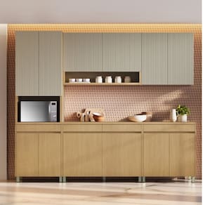 Cozinha Modulada 5 Peças com Tampo 100 MDF Simone Mendes Nesher, combina sofisticação e funcionalidade em móveis 100 MDF, projetados para transformar ambientes. Os produtos destacam-se pelo design moderno com puxadores gola ou ocultos, portas caneladas no estilo ripado e dobradiças slow motion para conforto e suavidade no uso diário. Com fundos anti-mofo Duratree e prateleiras amplas, garantem organização, durabilidade e proteção. Oferecendo opções para diferentes tamanhos de espaço, como paneleiros, armários aéreos e balcões com tampo, a linha une resistência, praticidade e elegância, tornando sua cozinha mais funcional e estilosa.