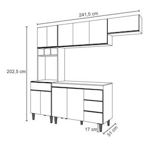 Eleve sua cozinha a um novo patamar de elegância e praticidade com a Cozinha Modulada 5 Peças Natalie. Com uma imponente largura de 241 cm, esta obra-prima de design oferece uma experiência única para quem busca o equilíbrio perfeito entre estilo e funcionalidade.