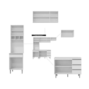 Conteúdo da Embalagem: 1 balcãoAndreia 1,20; 1 aéreo geladeira Andreia; 1 aéreo 1,20 Andreia; 1 paneleiro Andreia;1 tampo 1,20