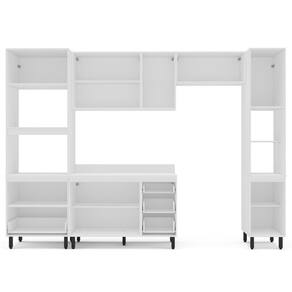 Caracteristicas: 2 Nihcos de 37x37cm suportam peso maximo de 10 kg 2 Nichos para forno e micro-ondas suportam peso maximo de 10 kg 4 Gavetas com corredicas telescopicas, que suportam peso maximo de 3 kg 10 Portas bater com dobradicas metalicas e basculante com pistao a gas 4 Prateleiras que suportam peso maximo de 5 kg Acabamento em pintura UV Semi-Fosco Base balcao com 3 gavetas suporta peso maximo 10kg Estrutura em MDF/MDP Itens Inclusos Kit Ferragens e Manual de Montagem Pes regulaveis Peso maximo suportado o tampo 15 kg Puxadores de aluminio