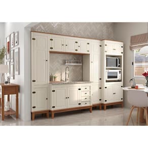 A Cozinha Modulada 5 Peças Off White da La Decora é completamente cheio de charme e elegância. Com estilo rústico que agrega luxo e conforto à decoração, é ideal para compor ambientes de cozinha e copa.
