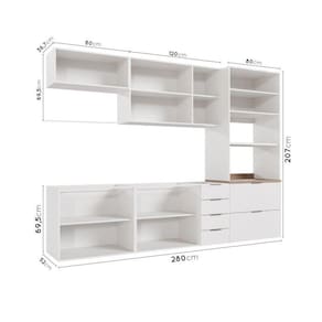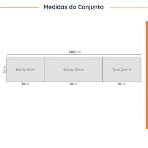Informação Complementar: 1x Armário Aéreo 3 Portas Ipanema Branco/BrancoLargura: 120 cmAltura: 69,5 cmPeso: 31,44 kgProfundidade: 36,7 cmNecessita Montagem: Sim1x Balcão Pia 2 Portas 4 Gavetas sem Tampo Ipanema BrancoLargura: 120 cmAltura: 69,5 cmPeso: 41,14 kgProfundidade: 51,5 cmNecessita Montagem: Sim1x Balcão 2 Portas Ipanema BrancoLargura: 80 cmAltura: 69,5 cmPeso: 23,5 kgProfundidade: 51,5 cmNecessita Montagem: Sim1x Torre Quente 2 Portas 2 Gavetas 2 Nichos para Forno e Microondas Ipanema BrancoLargura: 80 cmAltura: 207 cmPeso: 75,58 kgProfundidade: 51,5 cmNecessita Montagem: Sim1x Armário Aéreo 2 Portas Ipanema BrancoLargura: 80 cmAltura: 69,5 cmPeso: 20,97 kgProfundidade: 36,7 cmNecessita Montagem: Sim